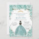 Convites Turquesa Blue Floral Princesa Dourada Quinceañera