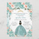 Convites Turquesa Blush Princesa Floral Dourada Quinceañera