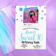 O convite para bolinhas, cor-de-rosa e turquesa, é perfeito para o seu doce baluarte de 16 anos. Foto bonita e quadrada com trabalho de arte brilhante é uma bonita e popular aparência para sua doce celebração de 16 anos. Carregue facilmente suas fotos nos quadros de fotos. Os gradientes cor-de-rosa e aquamarina são versáteis para paletas doces de 16 cores que incluem rosa, roxo e azul-esverdeado. Um modelo fácil para qualquer décima sexta festa de aniversário.