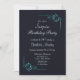 Um elegante e profundo convite de aniversário de surpresa azul-da-meia-noite 18º com folhas florais ornamentados turquesas embelezadas para enquadrar os detalhes do convite.