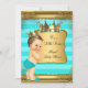 Chá de fraldas Príncipe Rapaz. Ouro Crown Dourada Turquoise aqua verde azul, "Cute Baby Boy Brunette Chá de fraldas". Fundo turquesa e estrutura do ouro. convite de festas "é um menino". Convites da Parte