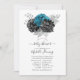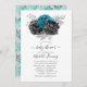 Turquesa rustica (teal), flor de brilho preto e prateado falso em preto e prateado online convite para noivas virtuais de longa distância ou chá de fraldas com uma cor damasco floral vintage invertida personalizável para suas especificidades de evento.