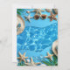 convite de festas com um design alegre e turquesa, com peixes-estrela, chapéus de verão e óculos de sol em volta de uma piscina de natação. Você pode adicionar sua própria ocasião ou outros textos. Este convite funciona bem tanto para uma festa adulta como para famílias com filhos.