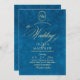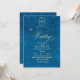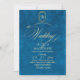 Elegante na moda Turquoise e um convite para casamento moderno de ouro com uma elegante fonte manuscrita com caracóis e um monograma da noiva e noiva. Clássico e elegante, simples e moderno convite.