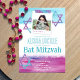 Convites Turquesa Colorida, Bat Mitzvah, Brilhante Rosa Que