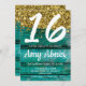 Convites Turquesa, Dourada Rústica Glitter 16 Festas de ani