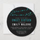 Capturar uma vibração moderna, mas divertida, com estes doces e negros convites para 16 anos. Os convites redondos únicos apresentam tipos de blocos modernos em turquesa e branco, com fios de terra de confetti correndo pelo topo em tons variados de turquesa e chalé.
