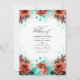 Convites Turquesa e Coral Foto de Casamento Floral Rústico