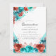 Convites Turquesa e Coral Russo Quinceañera Floral