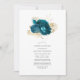 Turquesa - rosas lacrimogéicos shabby-chic com folhagem dourada falso Celebração do convite Life com um padrão de libélula cômica invertida personalizável para suas especificidades de evento.