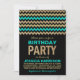 Turquesa e Dourado efeito de brilho Convites de aniversário Chevron.