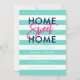 Convite de festas Chic Housewarming com as palavras "Home Sweet Home" em azul sans serif e rosas, tudo em um fundo de turquesa e listras brancas. A placa tem um lado de trás rosa correspondente. Veja aqui outros novos itens home https://www.zazzle.com/rosewoodandcitrus/new%20home?rf=238364477188679314 Personalize-o substituindo o texto do marcador de posição. Para obter mais opções, como alterar a fonte e seu tamanho/cor ou o espaçamento entre letras, clique no botão "Personalizar". *Observe que a Marca d'água do Zazzle que aparece na visualização de zoom NÃO aparecerá no produto impresso final. © Rosewood e Citrus