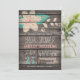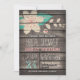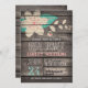 Chá de panela com flores cor-de-rosa e turquesa, design floral no campo de colheita rústica ocidental, madeira de celeiro, fundo de madeira impresso com fontes elegantes e antigas. Perfeito para o país, fazenda, fazenda, chás de panela de temas/chás de casamento. Este convite giro e divertido é o excelente ano redondo para primavera, verão, outono ou chás de panela de inverno!