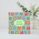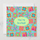 Convide um amante de colcha ou colcha com este convite colorido de colcha quadrada completamente personalizável. Personalize completamente na frente e atrás para adicionar suas próprias palavras, nomes e outras informações. Esta arte original de colcha faz um convite vibrante. A arte quilt baseada na arte original apresenta blocos de manta de retalhos favoritos mais blocos únicos em cores dinâmicas e vibrantes de laranja, amarelo, rosa, turquesa, e verde limão em um fundo azul de aqua turquesa para uma bela paleta colorida. Um oval de verde limão está na frente do cartão para dizer "Você é Convidado" ou outras palavras da sua escolha. Mostre o seu amor por colchar com estas designs de arte colcha com outros produtos de arte colcha. A arte quilt é uma arte original da designer de tecidos e mantas Phyllis Dobbs e está em uma coleção de tecidos da Quilting Treasures. Esta arte está disponível em outros produtos e em vários planos coloridos. Há mais produtos disponíveis na loja Business da Phyllis com Flair. Corresponder com carimbos coordenadores, envelopes, adesivos e etiquetas de endereço de retorno.