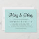 Robin ovo azul dela e seu chá de casamento com um simples design com fontes limpas e um guião bonito escrevendo Hers & Hers através do bonito convite, decorado com pequenos corações na h's.