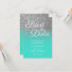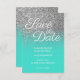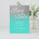Convites Turquesa Ombre Silver Glitter Salvar a Data