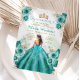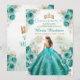 Convites Turquesa Princesa Floral Dourada Quiñceanera