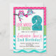 Convites Turquesa rosa e segundo aniversário verde de Verão