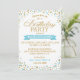 A turquesa de borrifar e os pontos dourados brilham o design da placa de convite de aniversário moderna.