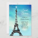 A cintilação Sparkling ilumina o acento a torre Eiffel em uma turquesa da aguarela, fundo do céu azul, fazendo este convite parisiense do doce dezesseis perfeito para o partido inspirado Paris.