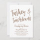 Um convite de festas de Ação de Graças que apresenta uma abertura de scripts em direção ao topo que diz turquia e touchdowns. No verso do convite encontra-se um padrão vintage, castanho e branco, espetado, que lembra o delicioso peru. Todos os elementos deste convite são desbloqueados e personalizáveis, portanto, tome a liberdade de ser criativo e fazer-o seu.