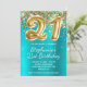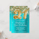 Convites Turquoise Blue Glitter Balloon aniversário de 21 a