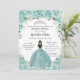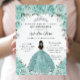 Convites Turquoise Green Floral Princesa Silver Quinceañera