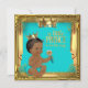 Chá de fraldas Príncipe Rapaz. Ouro Coroa Dourada Turquesa Azul-Teal Verde, Bonito Menino Belo chá de fraldas Étnico Africano-Americano. Fundo turquesa e estrutura do ouro. convite de festas "é um menino". Partido Convida "chá de fraldas étnico africano-americano" "chá de fraldas mexicano", "chá de fraldas hispânico", "chá de fraldas indígena",