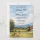This wedding theme features a hand-painted watercolor countryside scene with sunlit fields, hills and horses. Perfect for destination weddings and vineyard celebrations. A portrait of European countryside landscape. This invitation can be easily edited with your wedding details.