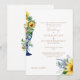 Bonito convite para casamentos florais de girassol. Mediterrâneo atrás. Pai da Noiva, texto Dourado. Linda fonte.