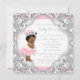 Convite de chá de bebê elegante com tutu rosa e princesa étnica com cordão de pérolas e coroa prateada e rosa em um fundo elegante de redemoinho rosa e branco. Este convite de chá de bebê com tutu rosa é facilmente personalizado para o seu evento, adicionando detalhes do evento, estilo de fonte, tamanho e cor da fonte e texto.