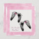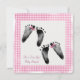 Par de pegadas de meninas recém-nascidas com arco de bolinhas e quadro de gingham para convite para Chá de fraldas Twin Girl.