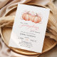 This elegant and charming baby shower invitation features a beautiful watercolor illustration of 2 sweet pumpkins with a delicate pink ribbon, perfect for celebrating the upcoming arrival of a little your twins in the fall season.