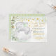 Twinkle Twinkle Little Star O convite de aniversário temático da Pequena Estrela, com um elefante bebê giro, verde aquarela macia e lua sonhadora e elementos estelares