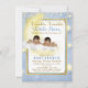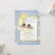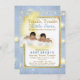 Twin boy Twinkle Twinkle reluzente convite para chá de fraldas de estrelas com adoráveis meninos étnicos em uma bonito lua amarela com nuvens macios em um bonito fundo azul e amarelo-estrela azul e folha de ouro. Você pode personalizar facilmente este belo convite de chá de fraldas de estrela cintilante para seu evento simplesmente adicionando seus detalhes no estilo de fonte de sua escolha. Este é um design impresso sem folha de alumínio real, brilho, etc.