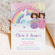 Whimsical Twins Princess e Unicorn Convite de aniversário, com um unicórnio arco-íris e princesas adoráveis. Personalize este incrível Convite de festas Princesa e Unicórn com os detalhes do seu partido de forma fácil e rápida, basta pressionar o botão personalizá-lo para reorganizar e formatar o estilo e a colocação do texto. Design Exclusivo (c) O Feliz Cat Studio. Itens correspondentes no repositório!