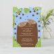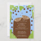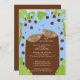 Convite para Chá de fraldas de Gêmeos Adoráveis com um par de girafas azuis gêmeas com bolinhas castanhas sobre um fundo de folha de selva. Itens correspondentes disponíveis em nosso compro. Perfeito para um chá de fraldas de gêmeos de um bebê. ©Stockberry Studio