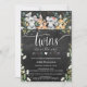 Twins Safari Animal Chá de fraldas Convite. Coala e canguru, de cor aquosa mais fina, com eucalipto e bonito flores de noz branca. O convite para chá de fraldas de animais safari de gêmeos elegantes e doces. Esta é uma forma doce de convidar convidados para o chá de fraldas de bébés australianos, chamado safari. O mesmo design também está disponível para um convite para chás de fraldas de meninas, um convite para chás de fraldas de crianças e um chá de fraldas neutro em relação ao gênero. Para personalização mais avançada deste design, basta selecionar o botão "Personalizar" acima!