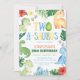 Make your child's birthday a prehistoric celebration with our Two A-Saurus Dino Birthday Invitation! With bright colors and a whimsical design, this invitation is sure to impress your guests and get them excited for the big day. Let your little one's love for dinosaurs shine with this fun and unique party invite.