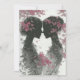 Cute wedding invitation for Lesbian, LGBTQ couple. Two hand drawn brides facing each other, in a garden with mauve, pink leafy branches. They have their hair up and the pretty leaves over their face makes a lovely silhouette. Pencil drawing for your special day.