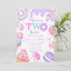 Convites Two Sweet Girl Donut Pastel Purple 2nd Birthday
