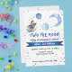 "Two the Moon and beyond! Elevate your little boy’s second birthday with our enchanting space-themed party invitations. Picture a celestial sky in mesmerizing shades of blue, complete with the Moon, planets, and an adorable rocket ship soaring towards the stars. Make it a personalized cosmic experience by adding your own details, and get ready for an unforgettable celebration!