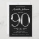 Tipografia, Convite de aniversário para 90 de Dourado Negro. Faça uma declaração ousada com este convite de aniversário de marcos negros e prateados, projetado para aqueles que apreciam a elegância moderna. Apresentando uma tipografia sólida e elegante contra um rico pano de fundo preto, os sotaques de prata que brilham trazem um toque de sofisticação para a sua celebração. Perfeito para uma noite ou um caso formal, este convite dá o tom para um evento de marco na moda e inesquecível. Personalize-o com os detalhes do seu partido e deixe o design chic falar por si mesmo enquanto você se prepara para brindar com verdadeira elegância.
