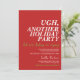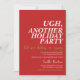 Convide seus hóspedes com um toque de humor e estilo usando nosso Convite "Ugh, Outro Feriado"! Esta design minimalista é perfeita para aqueles que apreciam uma reviravolta moderna nos convites tradicionais de férias. Apresentando um fundo vermelho em negrito com texto branco e verde. Ideal para aqueles que amam a simplicidade com um pouco de atitude lúdica. SNL440