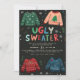 This Ugly Sweater Christmas Invitation is bursting with festive fun, featuring playful watercolor illustrations of classic holiday sweaters in bright red, green, and blue against a bold black background. Perfect for a cozy and cheerful winter gathering with family or friends! It’s easily customizable, and if you need any help, you can write to me directly — I’ll be happy to assist you!