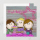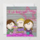 vrolijke kaart met n illustratie van 3 meiden.