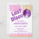 © Socialite Design Inc. & LICENSORS. Comemore uma Festa de solteira da Disco convidando os convidados com o último convite para festa de solteira da discoteca. As cores são ouro, prata, rosa, roxo.