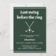 Celebrar o "Último Balanço Antes do Anel" do noivo com nosso na moda Golf Bachelor Party! Esta design de tendências apresenta um esquema de cor verde-chic, completo com um clássico tênis de golfe e motif do clube de golfe. Perfeito para entusiastas de golfe que querem acabar com as festividades no estilo. Prepare-se para um dia de diversão e risos no verde enquanto você honra os últimos dias de singelo do noivo. Não perca esse convite para dar um pontapé na despedida de solteiro de uma forma memorável! Peça agora e prepare-se para acertar os links com seus amigos favoritos de golfe.