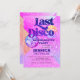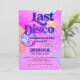 Convite para festa de solteira de esfera Disco da Retro 70 com bolas rosa-brilho e roxas sobre fundo brilhante. +++++++ Adequado para uma noiva retrô moderna de tendências ser celebrada.