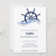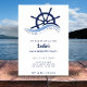 Convites em chá de panela/festa de solteira, azuis e brancos, com helm do navio e com a frase "última vela antes do véu". Personalize-o com os detalhes do evento.